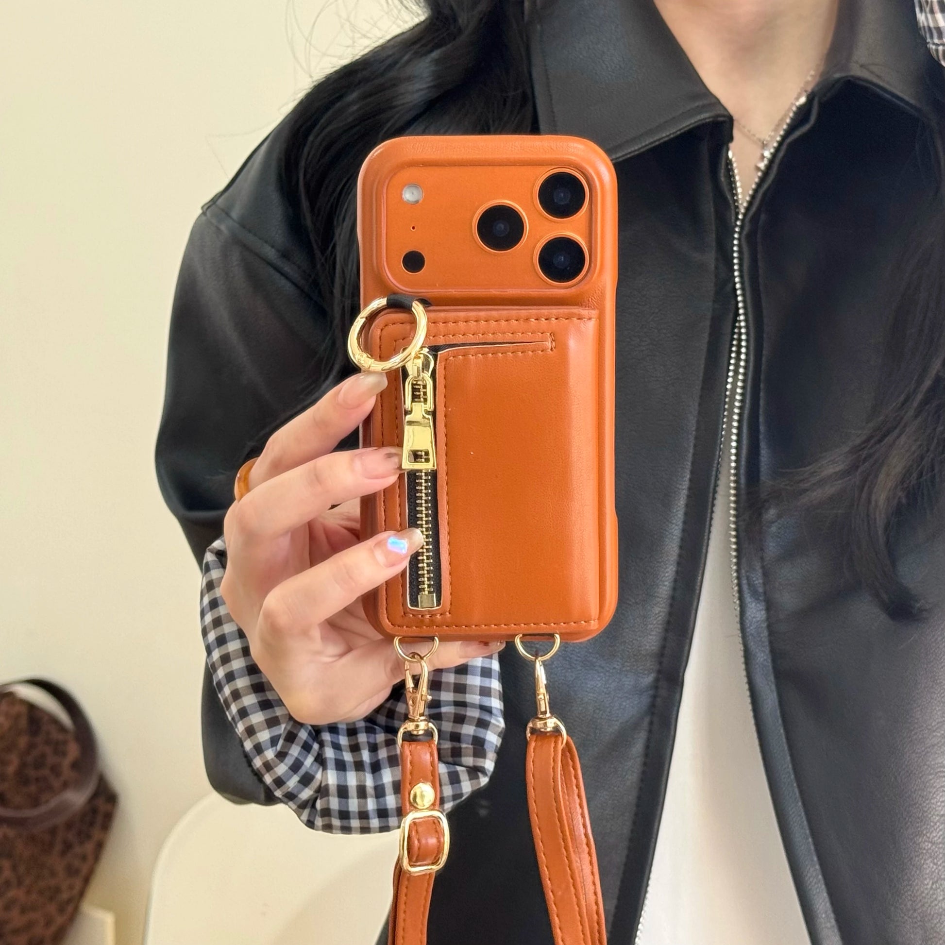 Crossbody Leather Wallet Phone Case with Zipper & Ring Holder